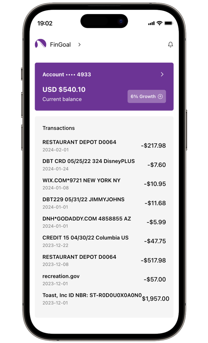 Learn how FinGoal can help you create personalized banking experiences from financial data. Schedule a call to learn more.
